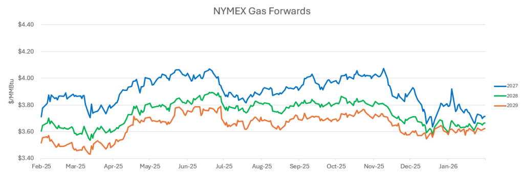 • Continued cold in Europe has supported rapid withdrawals from storage and left inventories at record lows, with more cold weather expected. Roughly 80% of US LNG exports have been heading to Europe, which will continue through the summer’s re-fill season.