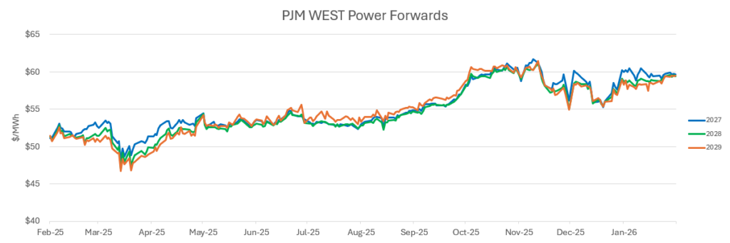• Permitting reform and load forecasting accuracy continue to be hot topics in PJM and other ISO’s experiencing rapid, large load growth from data centers. Hyper-scalers are motivated to support and/or recommend methodological modifications in order to expedite the deployment of new dispatchable generation while the governing bodies remain concerned about reliability and costs.